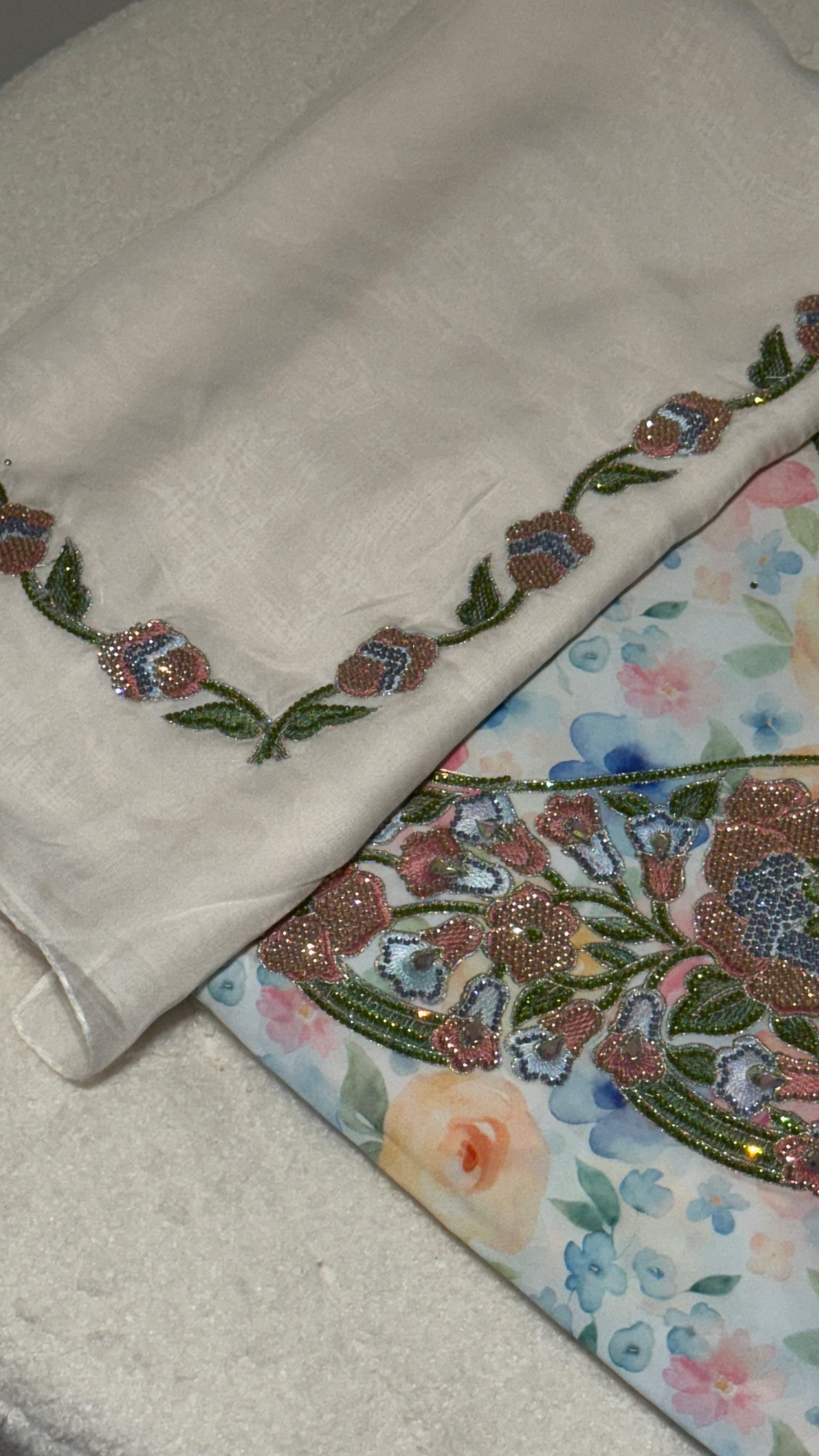 Our delicate Blossom Hill is crafted from airy eskada fabric adorned with sparkling diamantes. Includes a sumptuous matching sheila that feels wonderfully soft against the skin. Perfect for those seeking understated elegance and refined wearability.